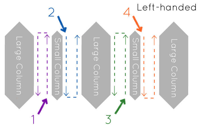 In het schema hieronder staat aangeven in welke volgorde de stroken aan elkaar verbonden worden.