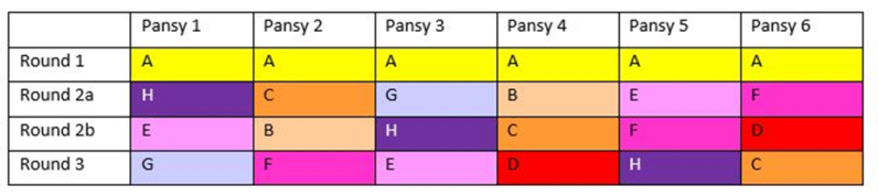 Maak er 6, volgens onderstaand kleurschema (pansy = viooltje).