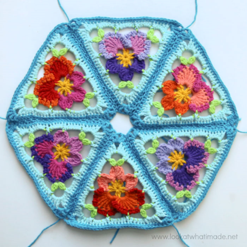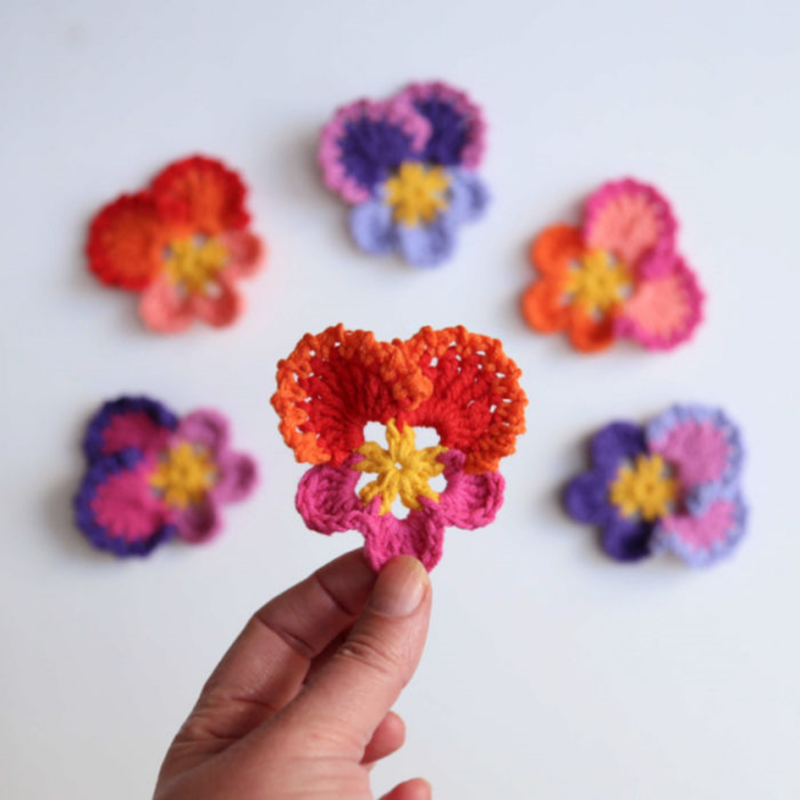 De viooltjes zijn geïnspireerd op een stukje gehaakt kant, dat mijn overgrootmoeder in de jaren 50 maakte. Toen ik het patroon voor de viooltjes in 2014 voor het eerst publiceerde, bracht het proces zoveel herinneringen aan haar terug.
