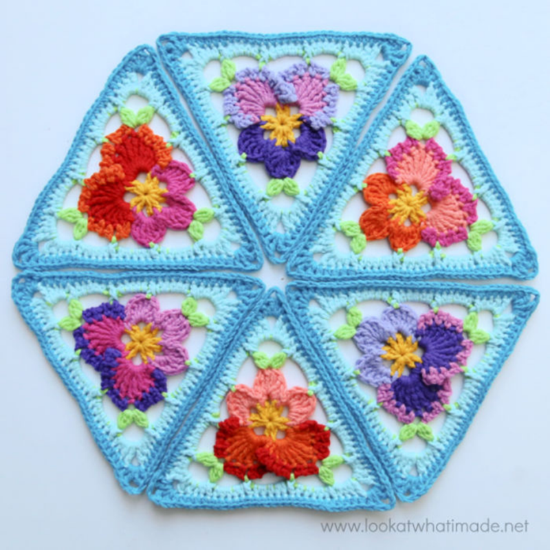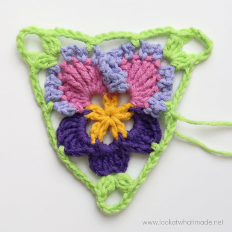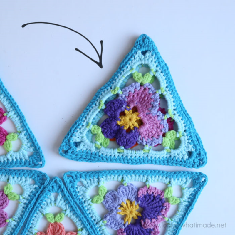 Wanneer je alle viooltjes gemaakt hebt, gaan we er driehoeken omheen maken.