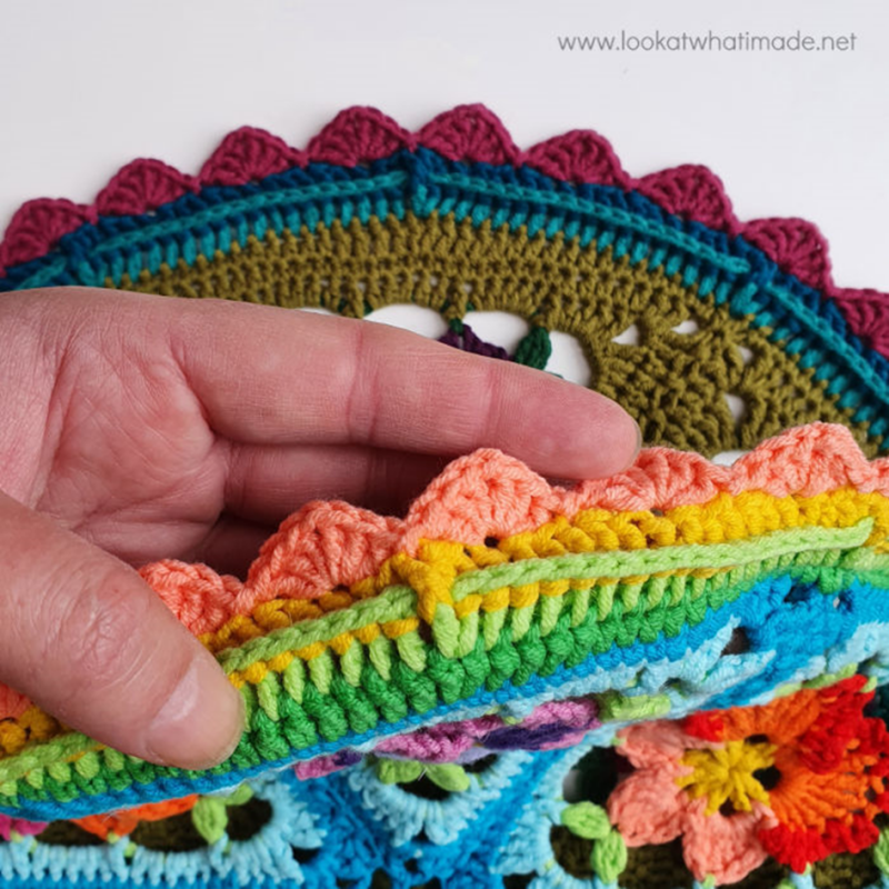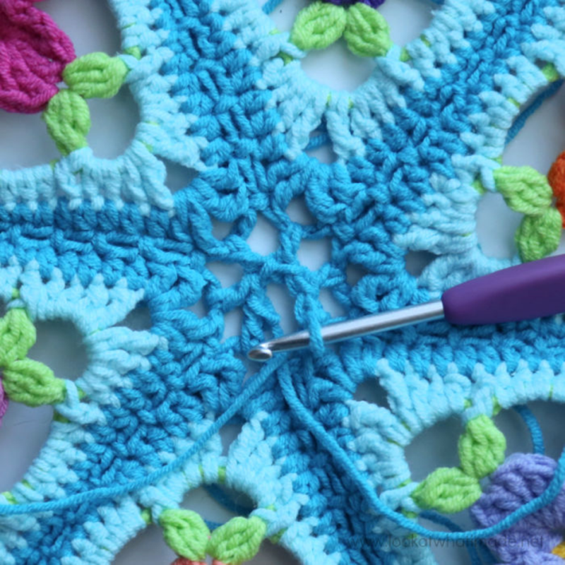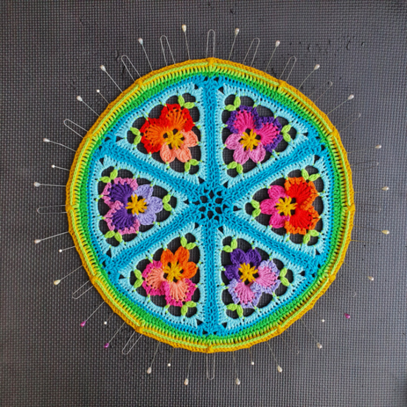 Deze Mandala is een ode aan plezier en vreugde. Het is ook een ode aan alles wat ik leuk vind aan haken. Kleur, schoonheid, fantasie en nostalgie.