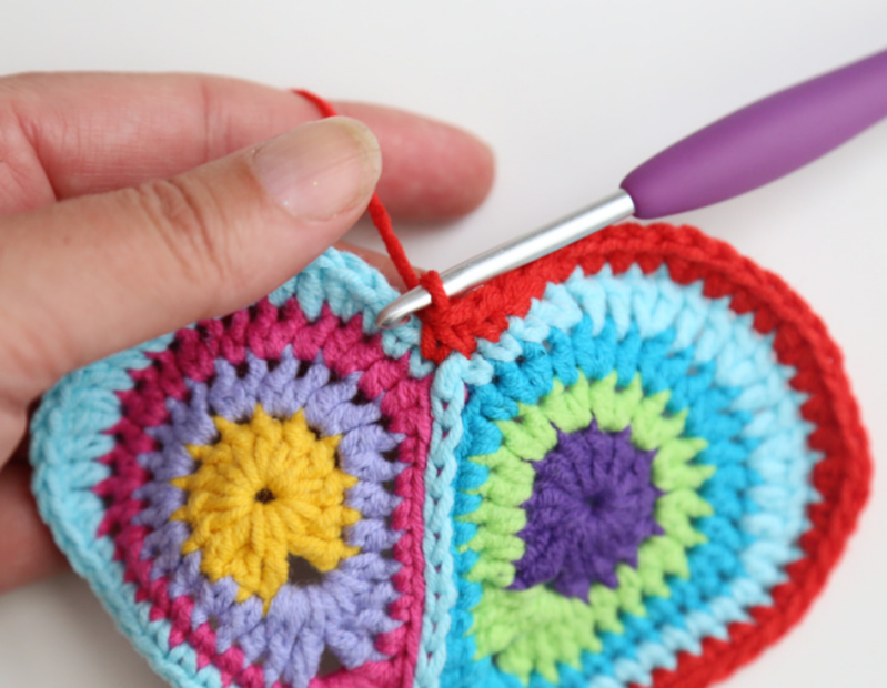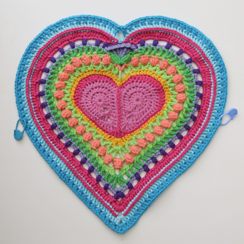 - 170m Aran/Worsted garen (5.5mm haaknaald) maakt een hart van 39cm x 39cm